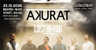 W Leśniczówce szykuje się wieczór, który powinien zainteresować zarówno fanów mocniejszego grania, jak i tych, którzy lubią koncerty z charakterem AKURAT wraca z pełnym energii show, a jako support pojawi się LOST IN YOU – młody zespół, który szybko zaczął zwracać na siebie uwagę na rockowej scenie. To jeden z tych koncertów, gdzie można usłyszeć i dobrze znane numery, i świeżą, nową energię.